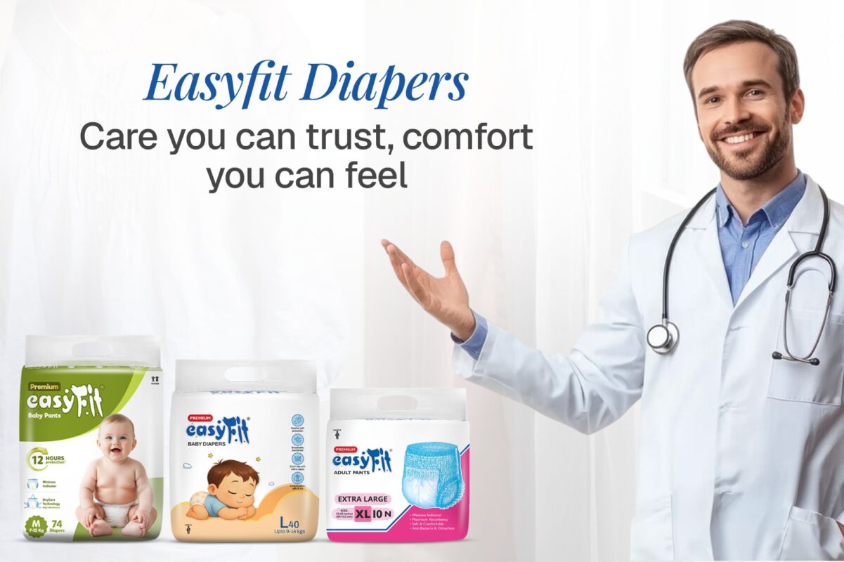 - EasyFit provides essential healthcare items like adult diapers, underpads, and baby diapers.