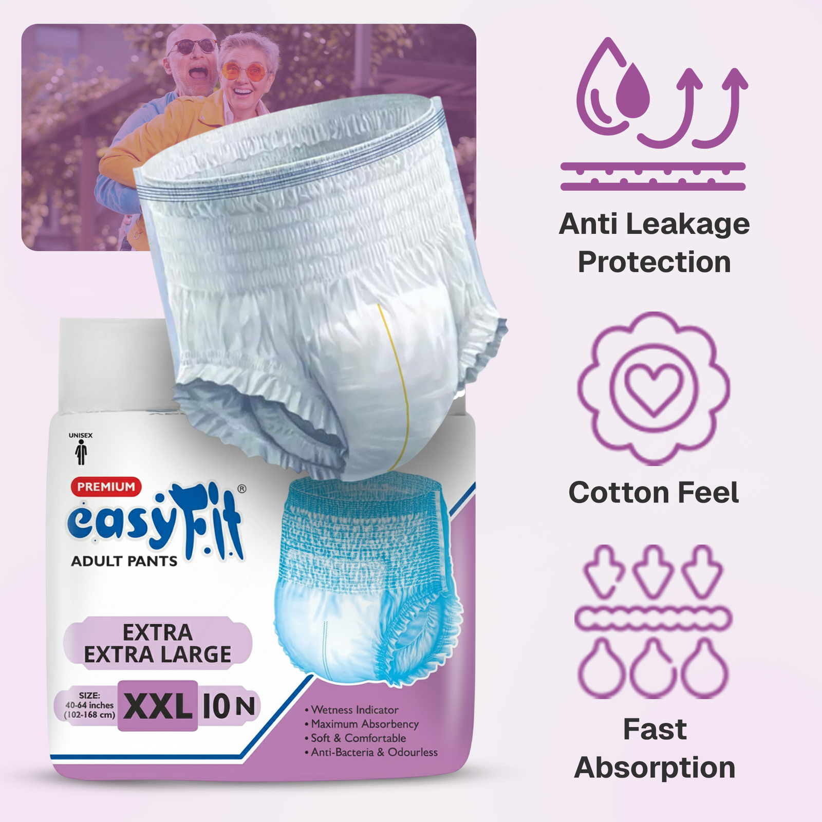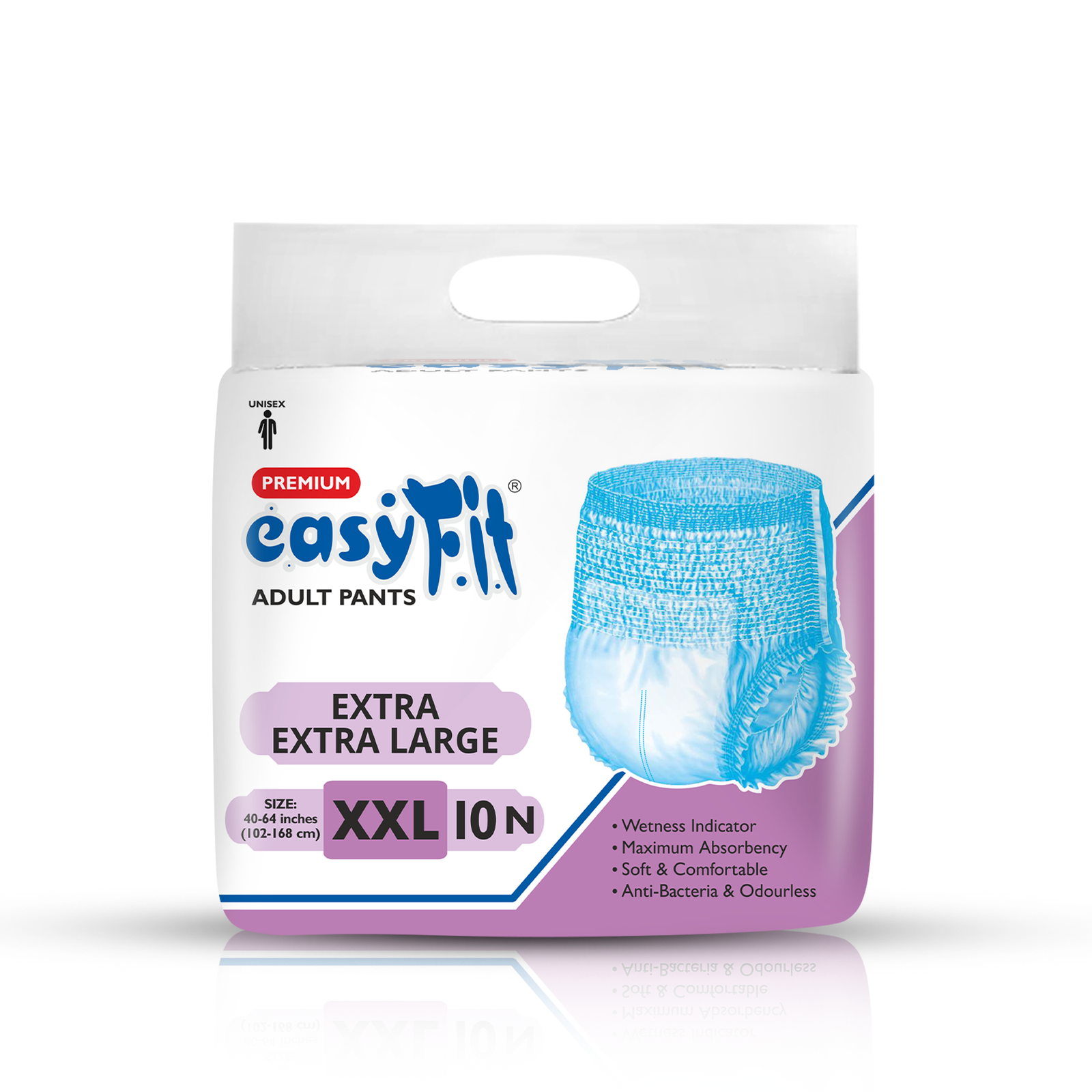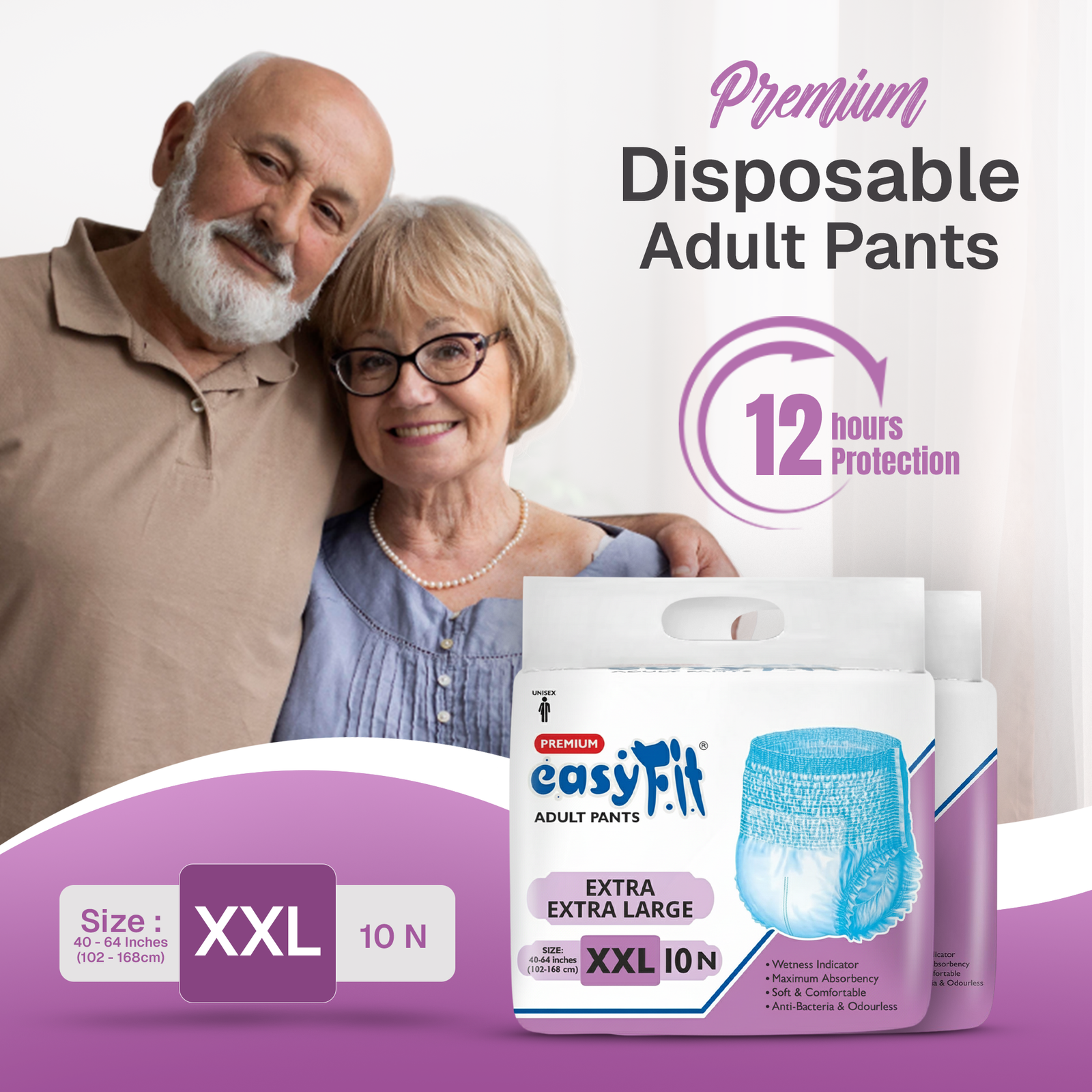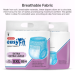 EasyFit Premium Adult Pants in XXL size are specially designed to provide ultimate comfort, hygiene, and heavy absorbency for individuals needing reliable incontinence support. Crafted with ultra-soft, breathable materials, these pants offer a snug yet comfortable fit, ideal for long wear throughout the day or night.