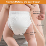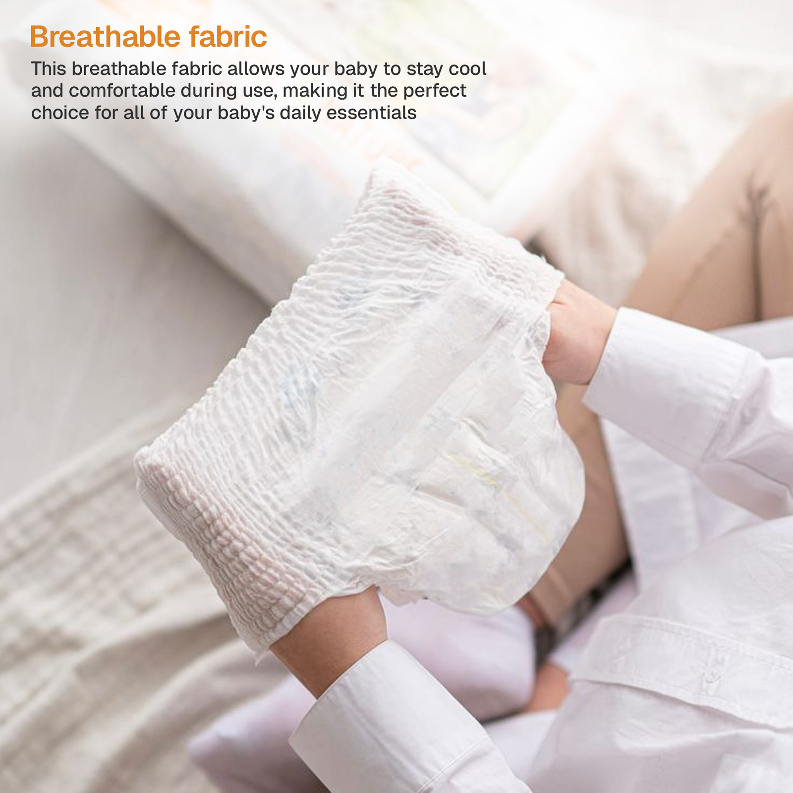 The ultra-soft, breathable material is gentle on delicate skin, helping minimize irritation and rashes. A 360° stretchable waistband offers a secure yet flexible fit that adapts to your baby’s movements without sagging or leakage. The built-in wetness indicator provides a clear visual cue when it’s time for a change, adding everyday convenience for parents.