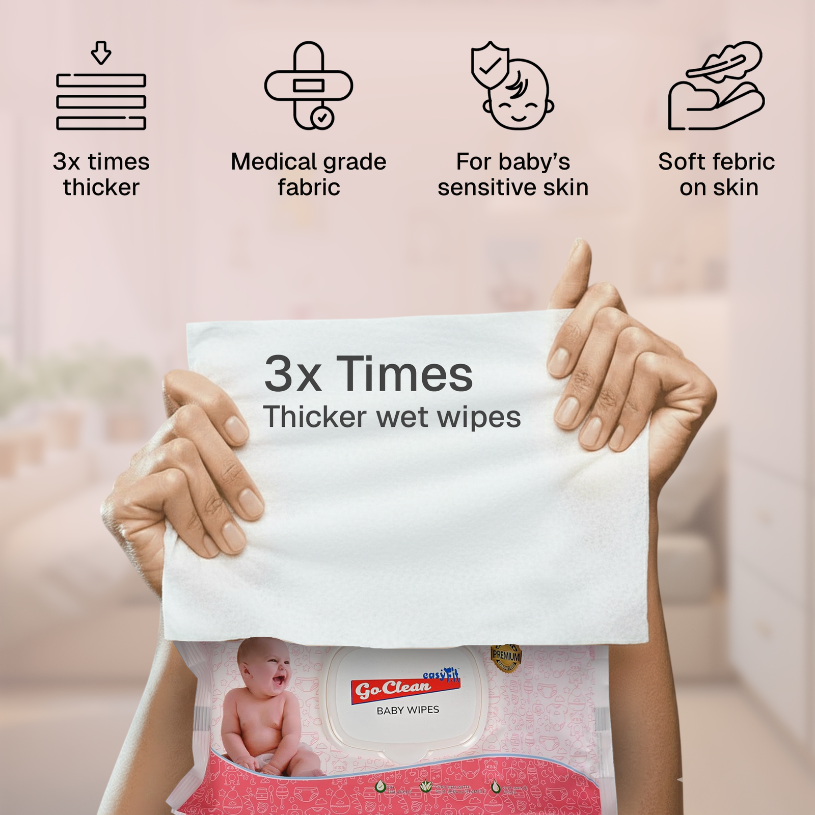 Thick & Durable Wipes: Designed for multiple uses.