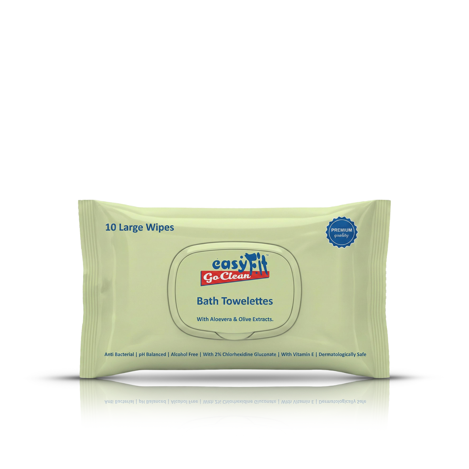 Easy Fit Go Clean Bath Towelettes are premium large wipes infused with aloe vera and olive extracts to deliver instant freshness and gentle cleansing. Alcohol-free, pH-balanced, and dermatologically safe—ideal for hygiene on the go.