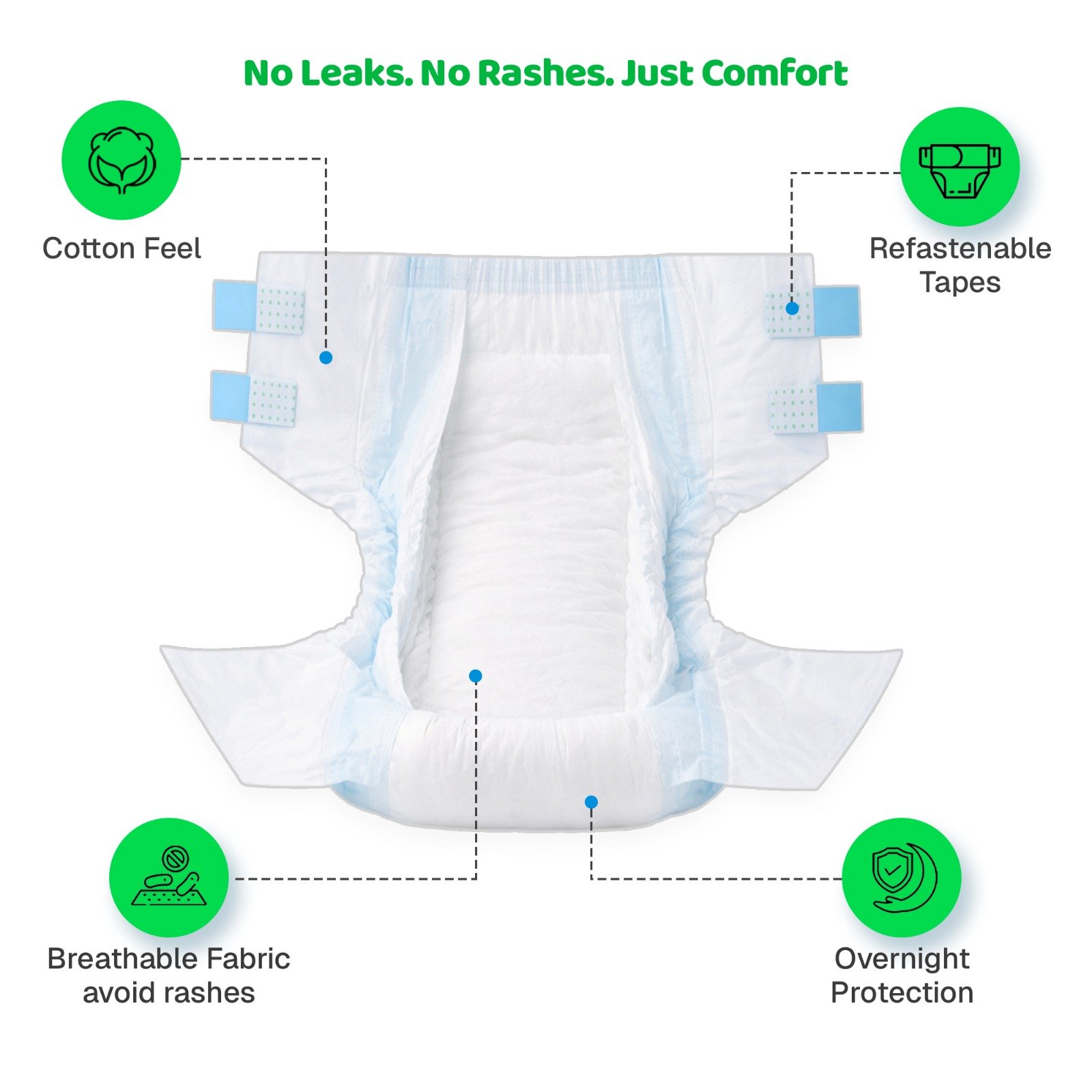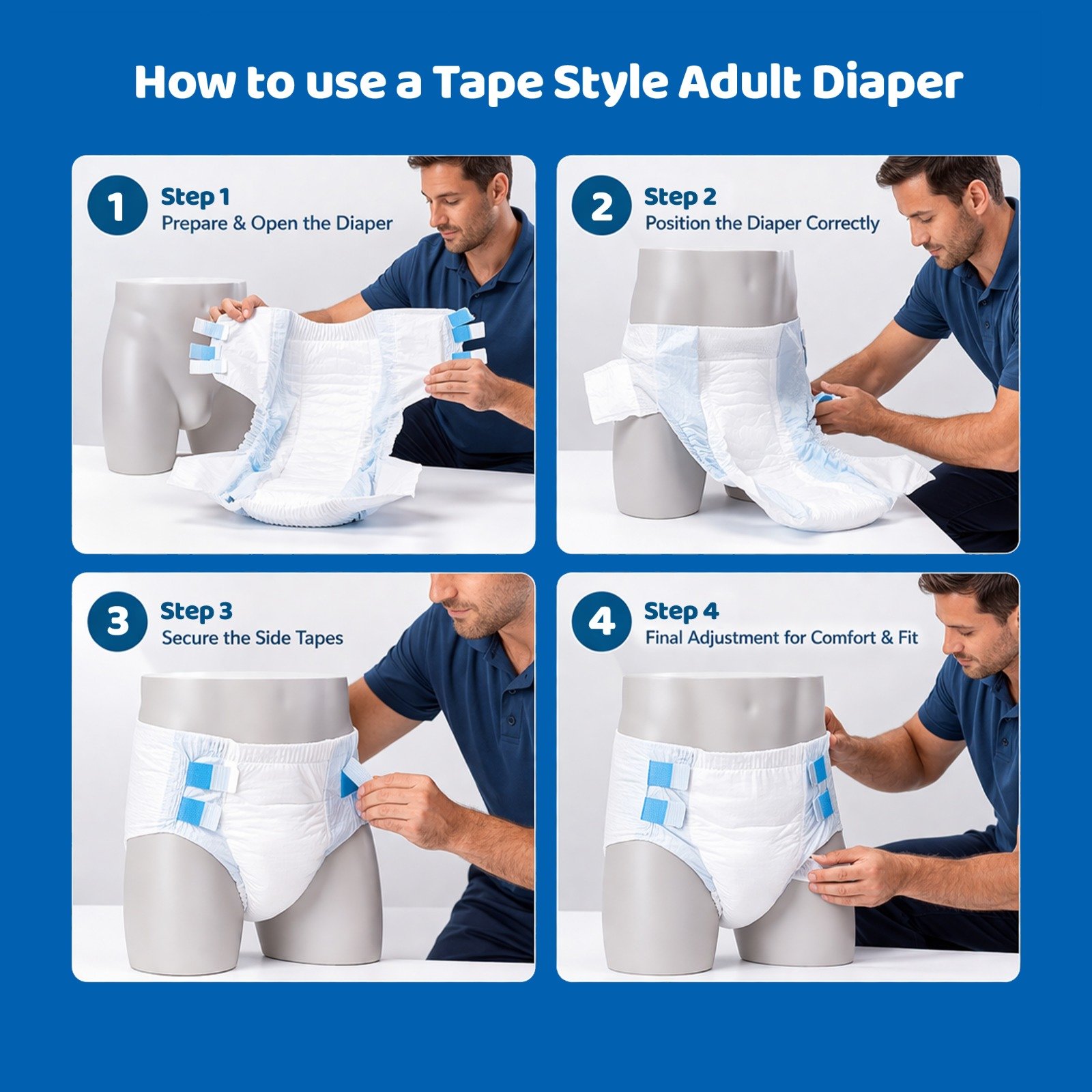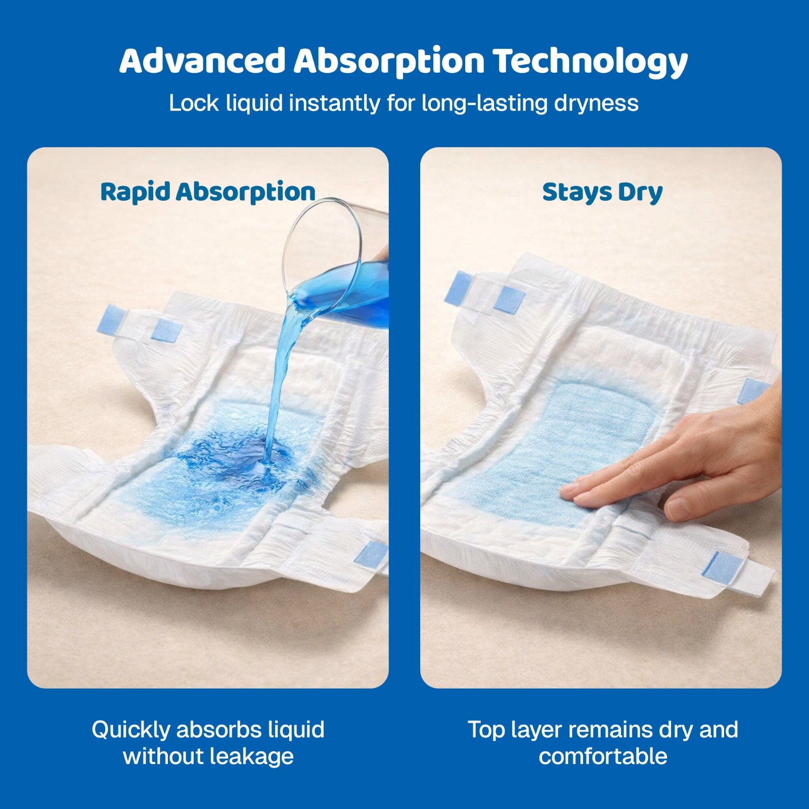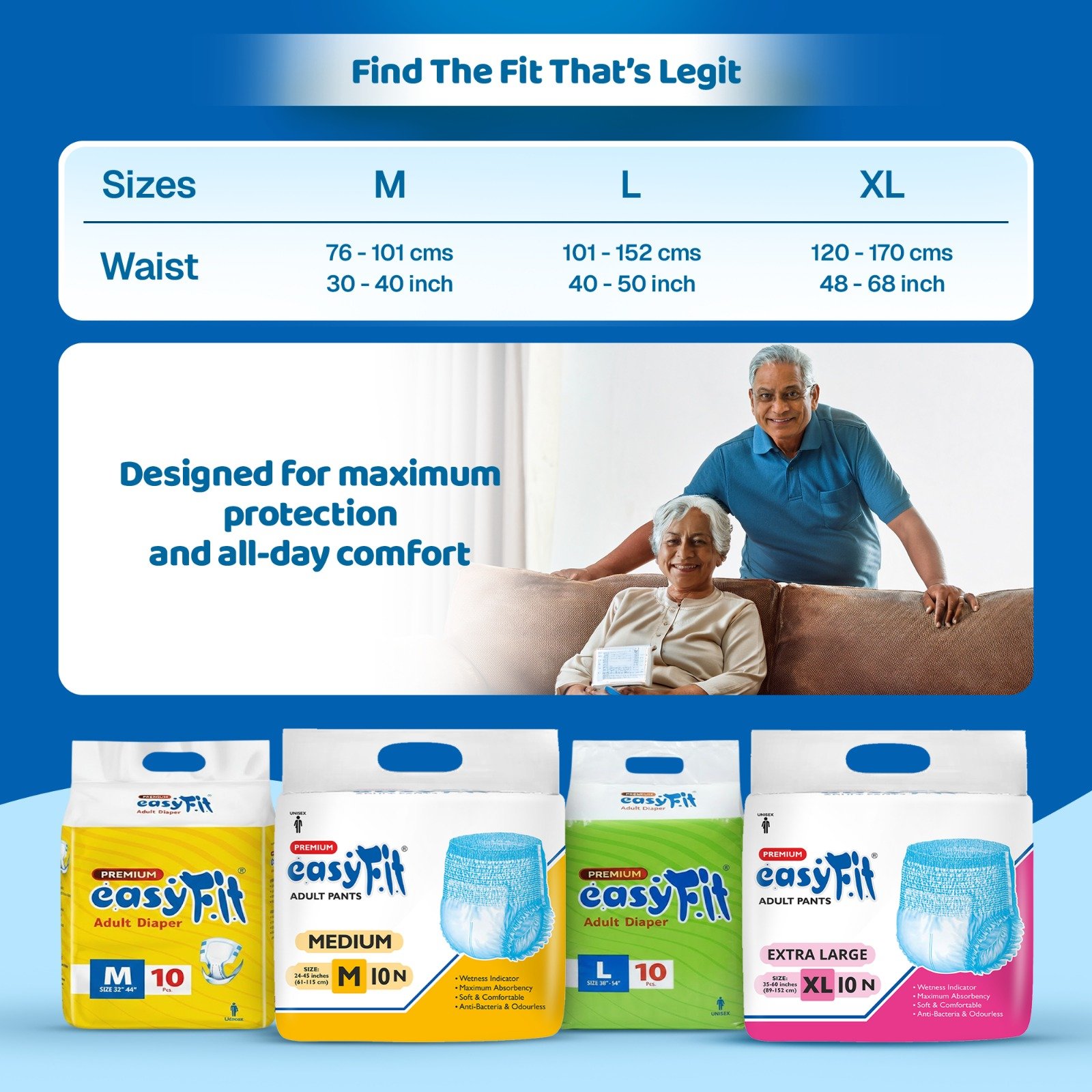 EasyFit Premium Adult Diapers are thoughtfully designed to offer maximum comfort and dependable protection for adults requiring extra care. Made with ultra-soft, skin-friendly materials, these diapers feature high absorbency, leak-proof leg cuffs, and an advanced channel system that locks moisture instantly—keeping the skin dry and irritation-free for hours.