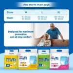 The flexible waistband and snug medium-size fit (32″–44″ waist) ensure ease of movement and a secure, comfortable wearing experience. Each pack contains 10 high-quality diapers, making it perfect for home care, travel, post-surgery recovery, or managing incontinence in elderly individuals.